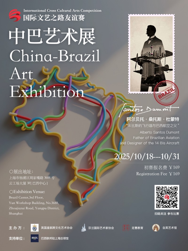 2025年7月25日,国际文艺之路友谊赛之中巴艺术展在上海正式宣布启动全球征稿,并于9月在大湾区展开升级宣发。本次赛事由英国皇家跨文化艺术协会(Royal Cross-Cultural Art Council, RCCAC)、芬兰国际艺术家协会(Arts Go Global, AGG)、定惠教育、含英艺术馆(香港)联合主办,上海工艺美术有限公司工艺美术厂、华享汇(深圳)数字科技有限公司协办,巴西联邦共和国驻上海总领事馆、中国商业研究所(香港)提供支持,并由在宥TSAI YU艺术丝巾担任品牌特别合作伙伴。本届赛事在江浙沪地区的推广工作已取得显著成效,吸引了各地中小学和华中、华北众多高校的积极参与。参展院校包括上海美术学院、鲁迅美术学院、上海大学、东华大学等知名院校。截至目前,赛事已收到累计超过约2000份作品,展现了青少年创作者对中巴文化交流的浓厚兴趣。赛事升级后聚焦的大湾区及泛华南地区:涵盖广东省(含香港、澳门特别行政区)、福建省、台湾省、广西壮族自治区、海南省等。并拟邀广州美术学院、广西艺术学院、暨南大学、深圳大学、汕头大学等高校开展最后一轮征集与推广活动,以期吸引更多大湾区及泛华南地区的优秀艺术创作者参与。