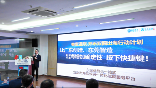 随后进入主题分享环节,粤贸通联CEO张恒先生,通过生动形象的PPT演示,全方位分析了“世界工厂”东莞制造在电子信息、智能制造、轻工纺织等产业领域的国际市场核心竞争力优势,在此环节中,张恒先生还进行了位于哈萨克斯坦阿拉木图市的“粤贸通联商品展贸中心”针对“莞企莞品”招商入驻的介绍与说明。粤贸通联将充分发挥资源整合与科创服务的双重优势,为企业提供全案定制化一站式出海陪跑解决方案,助力更多东莞企业深耕中亚,共享“一带一路”倡议下的合作红利。