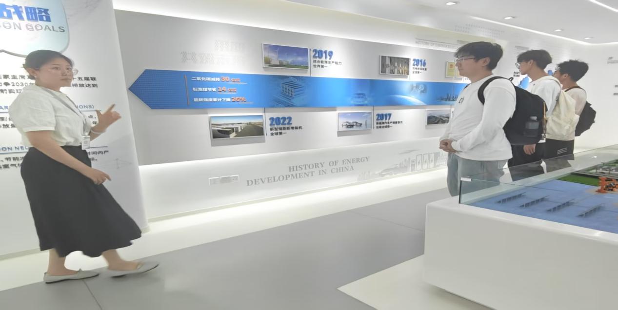 调研伊始,中筑能源有限公司品牌经理为团队成员讲解中国能源现状:当下中国能源需求攀升,传统能源占比高,清洁能源发展迅猛,能源结构加速转型。团队注意到,我国部分能源品类进口依赖度仍高,而上半年规模以上工业中水电、核电、风电、太阳能发电等清洁电力占比达32.2%,较上年同期提升2.3个百分点。在此背景下,“双碳”战略成为推动能源结构转型、实现可持续发展的关键指引。