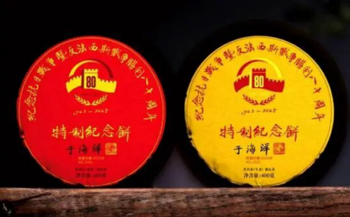 远在西南边陲,云南勐海大叶茶厂为纪念抗日战争暨世界反法西斯战争胜利八十周年,职工们放弃休息,不要任何报酬,加班加点,精心制作了特别纪念茶饼。每片茶饼上都刻着醒目的“纪念抗日战争暨反法西斯战争胜利八十周年”字样,