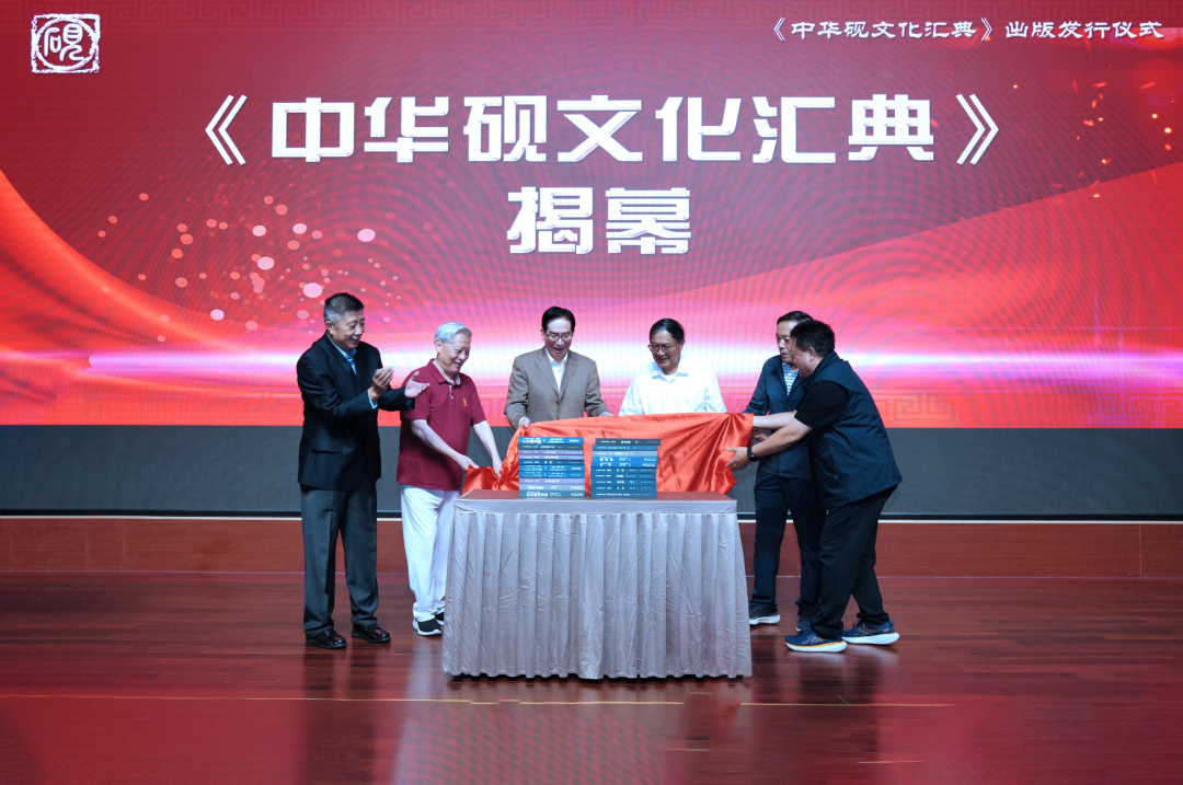 吴双战司令员、中华炎黄文化研究会李玉赋会长、刘红军副司令员、中国文房四宝协会陈建国会长,中国工艺美术学会才大颖理事长、董方军会长为《中华砚文化汇典》揭幕