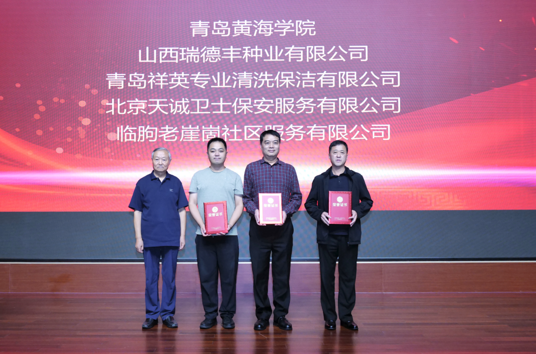 张补旺先生代表砚研会向捐赠单位代表青岛黄海学院、山西瑞德丰种业有限公司、青岛祥英专业清洗保洁有限公司、北京天诚卫士保安服务有限公司、临朐老崖崮社区服务有限公司捐赠《汇典》