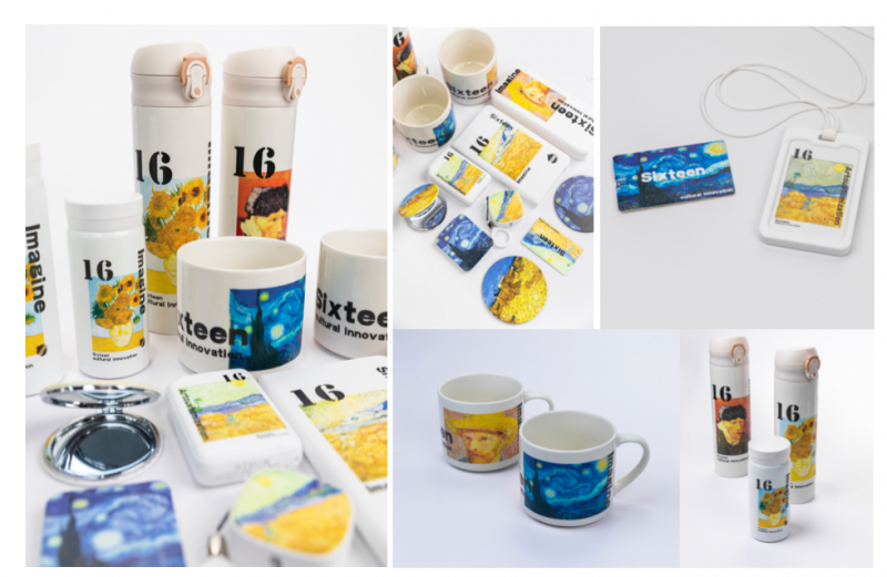 消费类定制涵盖杯子、帆布包、服饰、文具、数码周边等多品类,工艺支持烫金、UV、光油、浮雕等。