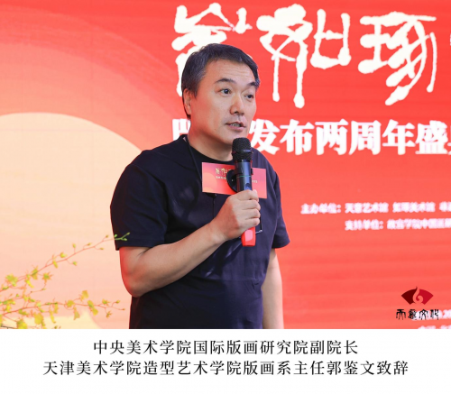 美术学院国际版画研究院副院长、天津美术学院造型艺术学院版画系主任郭鉴文聚焦版画市场发展进行发言。他提到,近年来中国版画市场呈现出蓬勃发展的态势,而崔如琢先生的版画作品在其中起到了重要的引领作用。崔如琢先生作为国画界的领军人物,其艺术实力与市场地位有目共睹。他的版画作品凭借着与原作高度一致的艺术品质、限量发行与亲笔签名的稀缺性,成为艺术市场中的“硬通货”。以过往的《百开团扇》版画为例,从原作36幅精品中精选幅限量发行,一经推出便受到市场热烈追捧,充分证明了崔如琢版画在市场中的强大号召力与潜力,为中国版画市场的繁荣发展注入了强大动力。