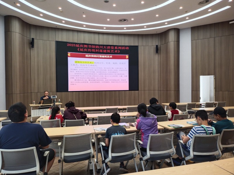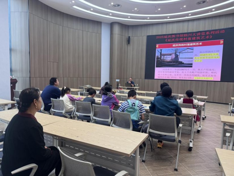 作为图书馆品牌活动,“妫川文化大讲堂” 此次聚焦 “延庆传统村落建筑艺术”,邀请本土文化研究老师主讲。讲座中,老师以榆林堡、东门营等村落为案例,结合图片与模型,生动解读传统民居:从 “抬梁式木构架” 的稳固原理、“硬山顶” 对北方气候的适应,到 “雀替”“花罩” 的木雕之美、影壁砖雕 “福禄寿喜” 的吉祥寓意。读者在轻松氛围中读懂建筑背后的历史人文,更添本土文化认同感。