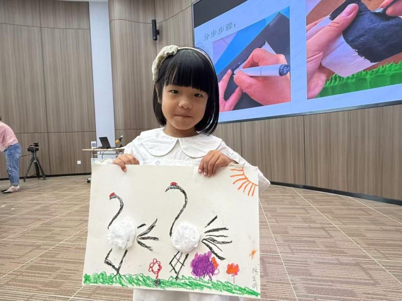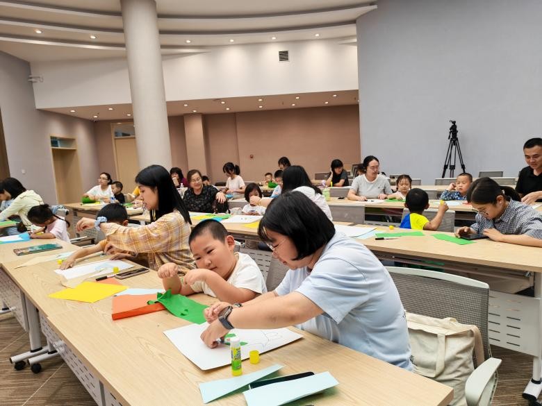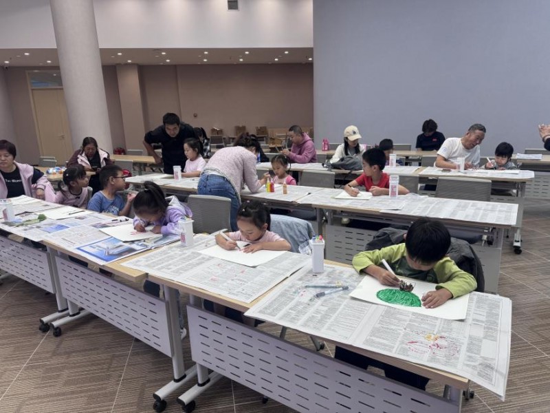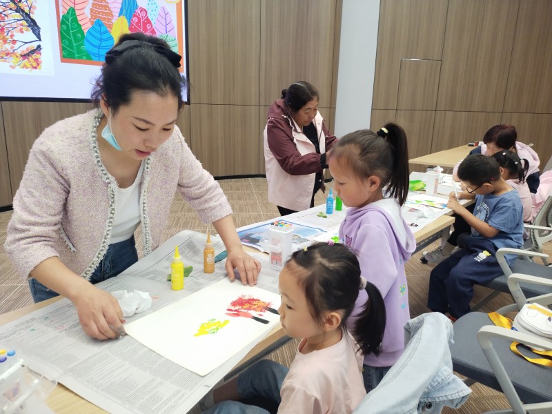 同日,图书馆一楼多功能厅开启 “妫川耕读有妙笔 —— 长城脚下的秋天” 活动,专为 4-10 岁儿童设计。专业美术老师带领孩子开启 “阅读 + 创作” 之旅:先通过绘本与实景图,领略秋日长城的壮丽 —— 赭红城墙映金黄草木,山间云雾如诗如画;再指导孩子用素描纸勾勒城墙层次,以彩笔为砖块设计传统回纹、五星红旗、麦穗等创意装饰,用画笔定格长城秋韵