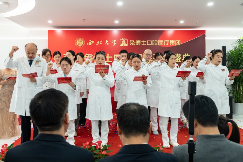 最后,在场的全体医护人员重温希波克拉底誓言和兔博士的使命,将继续肩负白衣天使的神圣职责,牢记初心,践行使命,为保卫人民群众的口腔健康做出应有的贡献。