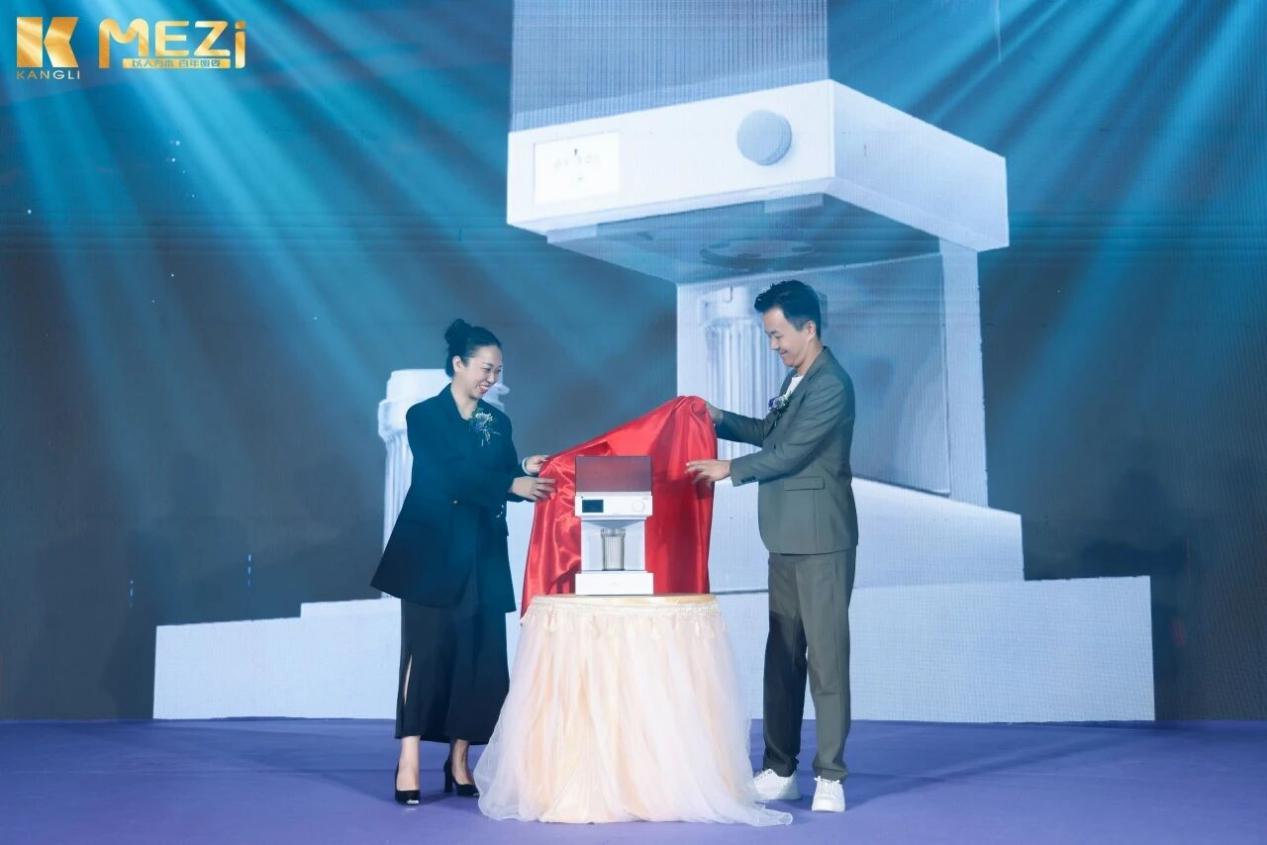现场,康力蜜姿发布大健康系列新品,一款足以推动万亿“家生态”的产品!这是一款结合物联技术和AI算法,根据不同人身体的独特情况,智能调配营养剂的引领大健康发展的跨时代智能产品——「易萃享AI定制营养机」!