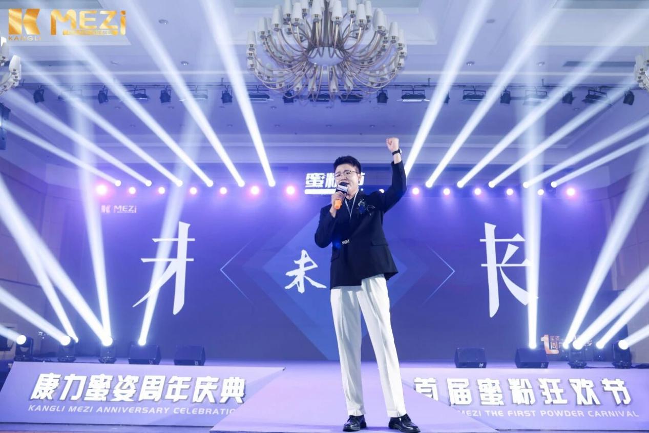 他铿锵有力的声音回响在整个会场:“因为梦想,所以我们聚在这里!因为相信,所以我们共同奋进!康力蜜姿坚守初心,开拓事业版图,为实现目标不断奋进!康力蜜姿能够承载所有蜜粉的梦想!”