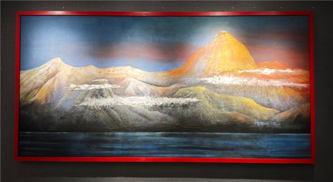 本次联展汇聚了两院艺术家及学员的113件作品,涵盖岩彩画、书法、篆刻等多个艺术门类。走进展厅,首先映入眼帘的便是一幅幅色彩斑斓、质感独特的岩彩画。这些作品题材广泛,从富有 “敦煌韵味” 的佛像,到细腻柔和的当代人物,从壮丽秀美的自然风光,到充满生活气息的市井百态,均以天然矿物颜料绘制而成,大部分岩彩材料采自四川本土,使得画作在色彩与质地上都散发着独特的魅力。观众仿佛置身于一个岩彩的奇幻世界,在欣赏画作的同时,也能感受到艺术家们对自然、生活的热爱以及对岩彩艺术的执着追求。