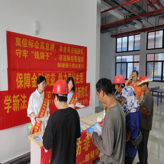 8月24日惠安支行走进支行周边某工程项目部、9月8日到某纺织企业进行专项宣传活动,针对高发的涉企电信诈骗、非法代理维权中介、“脱离担保责任”骗局等风险点,进行靶向式风险提示,指导企业识别风险信号,从源头降低金融风险隐患。