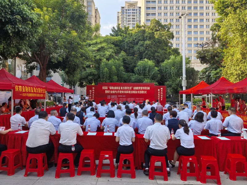 9月15日,安溪县支行举办“保障金融权益 助力美好生活”金融教育宣传周活动暨银行业维护公平竞争市场环境自律倡议书签署仪式。当地银行业机构代表共同签署维护公平竞争市场环境自律倡议书,旨在规范行业行为,营造健康有序的金融市场环境。活动现场,中国邮政储蓄银行等多家金融机构设立宣传展位,工作人员通过发放宣传手册、现场讲解等形式,向群众普及金融知识,提升公众金融素养,增强风险防范意识。