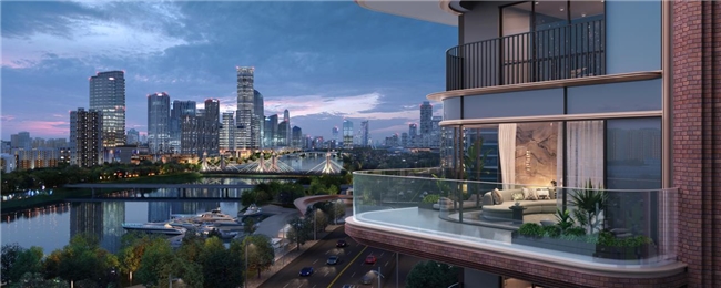 产品层面,项目以“中建好房子”第四代住宅标准为基准,携手全球大师团队打造“丹韵鎏光”立面美学,融合传统陶砖叠涩工艺与现代幕墙语汇,以天幕大窗和精细线脚重塑运河天际线,重拾东方审美。