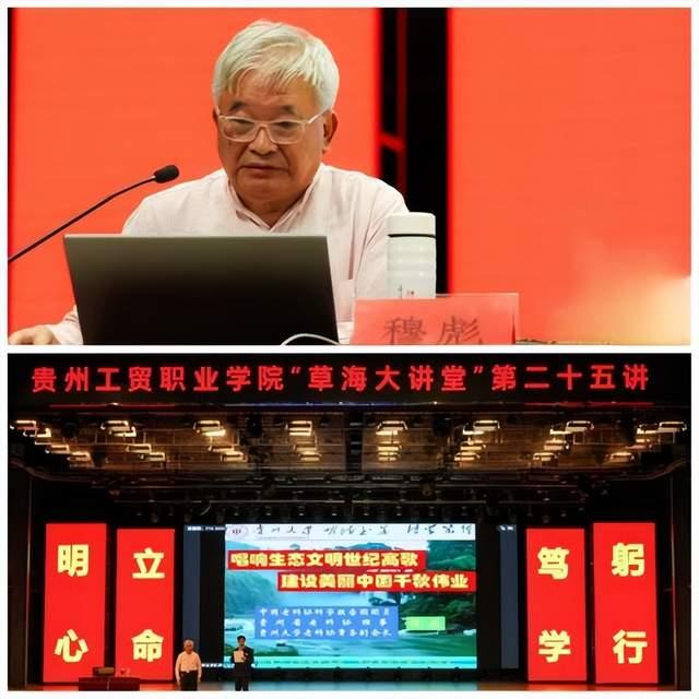 9月17日晚,贵州工贸职业学院在该校辰海大剧院举办第二十五期“草海大讲堂”讲座,邀请中国老科协科学报告团团员、贵州省老科协理事、贵州大学老科协常务副会长穆彪教授为主讲嘉宾,开展主题为“唱响生态文明世纪高歌,建设美丽中国千秋伟业”的专题讲座,全校1000余名师生参加。校党委副书记、校长勒系琳主持讲座。