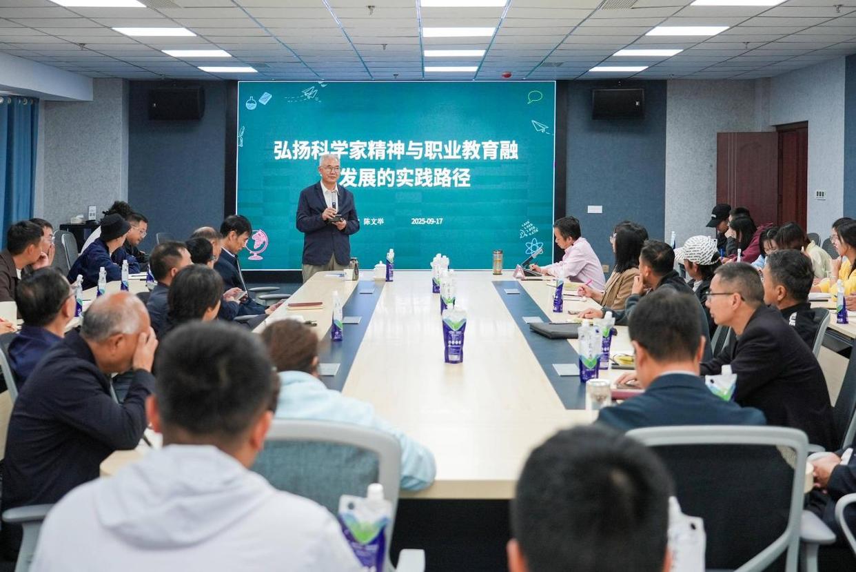 陈文举深入分析了科学家精神与职业教育融合的战略价值,指出这是服务贵州特色产业发展的重要创新路径。他提出三点建议:在专业建设方面,围绕贵州大数据、大健康、现代农业等特色产业,深化校企合作,实现专业链与产业链精准对接。在课程开发上,建立贵州科学家精神案例库,开发本土化特色课程。在人才培养上,培育兼具专业技能和科学家精神的复合型人才。