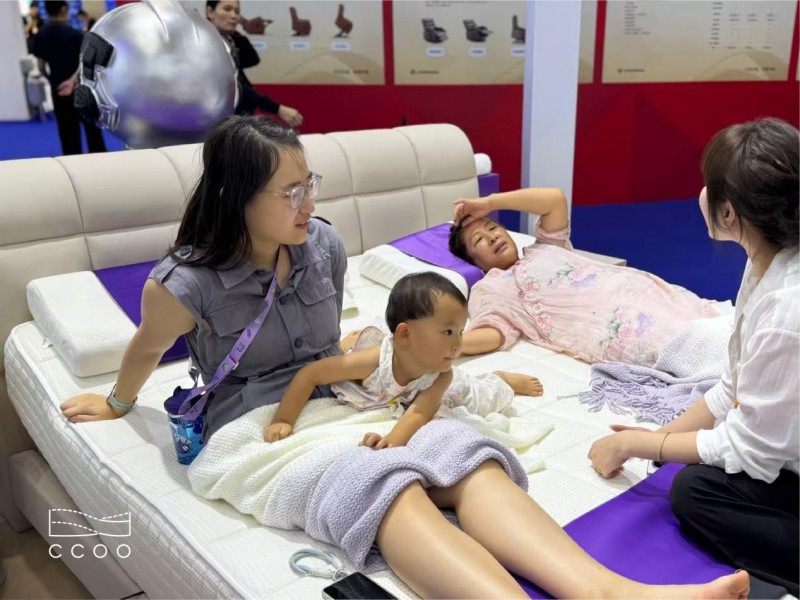 三天展期,CCOO智慧卧室接待3000余名银发长者,现场多次出现“三代同堂”共同体验的温馨场景:长辈体验6分钟哄睡快速入眠,中青年查看健康报告与远程同步功能,孩子们好奇尝试语音控制和床体升降,互动积极、反馈热烈。