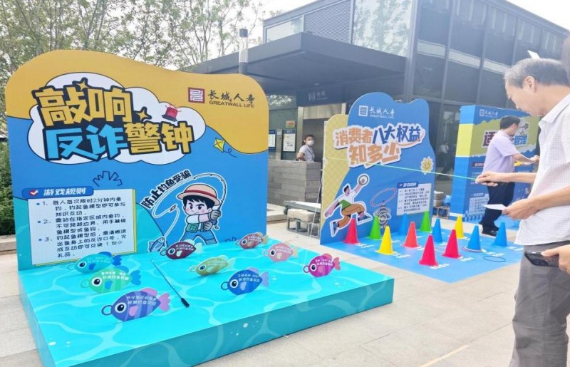 9月16日,长城人寿在西城区新街高和商圈开展“保障金融权益 助力美好生活”主题金融宣传周活动。通过“金融+传统文化”的创新模式,将投壶、套圈等传统游戏与金融知识宣教深度融合,为商圈新市民、老年群体及学生群体打造了一堂生动活泼的金融安全公开课。