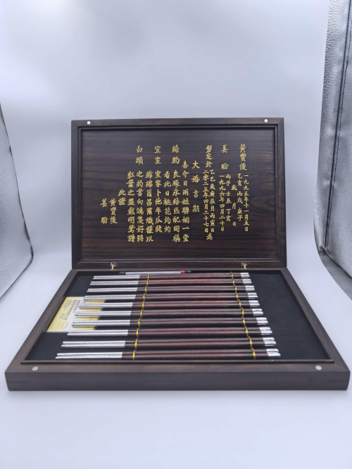 追溯其背后,是金华市中银餐具厂近三十年的匠心积淀。作为深耕餐具制造领域的实力企业,致力打造红木纯银制品的头部品牌,工厂从创立之初便坚守 “品质为先” 的理念,历经二代家族传承,不仅成为国内红木纯银筷子品类的践行者,更手握 “筷筷红”品牌,用时间与口碑筑牢品牌根基。从红木原料的甄选,到纯银材质的精细提纯,再到成品的手工打磨与组装,工厂建立了一套覆盖全流程的品控体系 —— 原材料入库前需通过多维度质量检测,手工制作环节有经验匠人实时监督,成品还要经过外观、功能等多轮核验,甚至为每一件产品建立专属生产档案,实现质量可追溯。这份对细节的严苛把控,让每一件华夏天工制品都经得起时间与使用的考验。