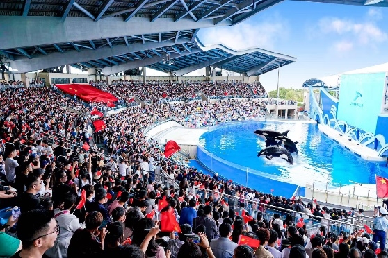 作为乐园的明星团宠及“流量担当”, 结合海洋特色与爱国主题,《虎鲸红歌会》将于国庆期间每日上演。届时,容纳5000人的剧场中,全场观众手持鲜艳国旗整齐挥舞,齐声合唱《我和我的祖国》,6只虎鲸齐跃,鲸腾四海,共绘祖国赞歌。更有《海豚奇缘》中 9 只海豚同步跃出水面,划出优美弧线;全球首创百老汇式海狮喜剧秀《海狮哈哈秀》爆笑开演,7 只海狮凭借灵活动作与幽默互动谢幕,全天精彩不断,让游客沉浸式体验海洋狂欢。
