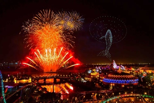 基于“请 3 休 12”的拼假趋势,公园此次提前从9月27日开放夜场,国庆期间限定推出“非遗板凳龙”与“海天鲸艳·无人机烟花盛典”,让游客足不出沪感受非遗“板凳龙”的魅力,伴随激昂民乐与璀璨灯光,专业演员将身着传统服饰,邀游客共执板凳龙身,于行云流水的动作中演绎 “舞龙戏珠”,在互动体验里共同传递对风调雨顺、五谷丰登的美好祈愿,让非遗文化在国庆氛围中焕发新活力。天空中数千架无人机以夜空为幕,绘制出对祖国的真挚祝福,以科技与艺术的完美融合点亮节日夜空,让爱国的种子在孩童心中悄然萌芽,继而绚烂烟花划破夜空,与无人机光影交相辉映,在秋莲河上空勾勒出 “火树银花不夜天” 的奇幻画卷,打造沪上国庆必看的夜空视觉盛宴。