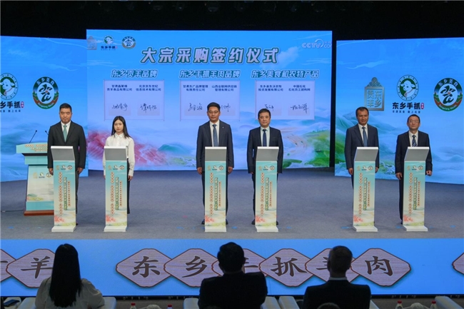 东乡贡羊传承千年匠心养羊技艺,已成为世界读懂中国农耕和游牧文化的鲜活注脚。东乡县委县政府与甘肃广电传媒集团紧紧立足“媒体提升品牌,数字赋能产业,产业支撑振兴”的思路取向,历时半年,策划提出“东乡贡羊”“东乡手抓羊肉”“东乡美食”品牌标识,设计开发了东乡手抓数字化结算平台。当天的发布会上,正式发布了三大区域公用品牌LOGO,上线启动了结算平台并顺利完成首笔交易,全国知名企业与东乡县洽谈签订了多项采购协议,全面推介了该县绿色优质的农特产品,标志着东乡农特产品出库上网、出山进城、融入全国市场的“新赛道”,也是甘肃广电传媒集团帮扶东乡产业发展的“新成果”,有力将资源优势、品质优势转化为品牌优势、发展优势,实现独居一隅到誉满全国的华丽蝶变。