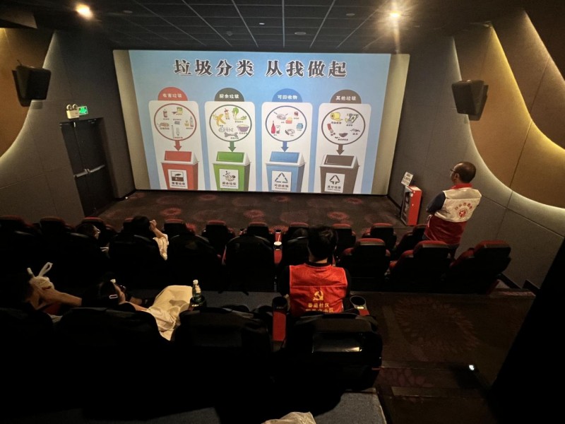 活动现场,影城的大屏幕成了垃圾分类知识的传播窗口。工作人员通过播放垃圾分类宣传公益视频以及精心制作的PPT,为居民们详细讲解垃圾分类的相关政策以及带来的诸多好处。从垃圾分类对环境保护的深远意义,到日常垃圾的具体分类方法,工作人员都进行了细致入微的讲解,引导居民从身边小事做起,积极践行垃圾分类,共同为建设和谐宜居的生态环境贡献力量。