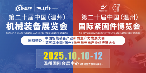 链全球,兴产业,促循环。10月10日至12日,第二十届中国(温州)机械装备展览会与2025第二十届中国(温州)国际紧固件博览会将在温州国际会展中心同期举办。本届机床展以“聚焦新质生产力·构建智造新生态”为主题,搭建产业互联平台,特别聚焦“中国紧固件之城”的产业升级。同期举办的紧固件展,将延伸产业链展示与对接,助力企业拓展合作。