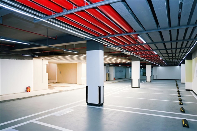 地下室样板区重点推介超韧地坪技术,地坪平均厚度仅15毫米,耐磨性能为普通混凝土数倍,可耐受手推车、机械设备长期摩擦与重压,具备不起尘、不起砂等优点,显著延长使用寿命,持久维持地下空间整洁美观。