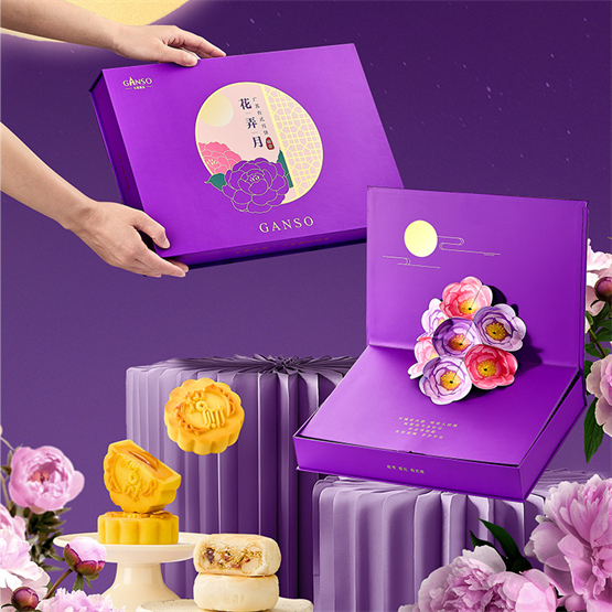 “花弄月”礼盒则延续元祖“传统与创新并存”的核心理念,精选广式、苏式、台式月饼的代表性口味,涵盖香辣牛肉、金腿五仁、松子玫瑰、经典百果、流心奶黄五大经典口味。其中不乏创新融合之作,如香辣牛肉口味将川味灵感与传统工艺结合,松子玫瑰则以东西方食材碰撞出浪漫风味。礼盒包装同样匠心独运,开启瞬间立体牡丹绚烂绽放,寓意“花开富贵”,既契合节日氛围,也适配商务馈赠、家庭团聚、亲友走访等多重场景。