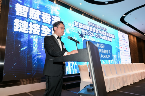 全国人大代表、互联网专业协会冼汉廸会长,MH,JP代表互联网专业协会,向大力支持协会工作的特区政府、中央政府驻港联络办,向长期关心协会发展的社会各界人士、各位会员致以衷心感谢。他在致辞中回顾协会过去26年的工作成果,并表示,二十六年来互联网专业协会始终站在推动香港创新科技发展的前沿,始终秉持推动科技普及化、缩窄数码隔膜、促进科技发展与正确应用的宗旨,凝聚业界力量,深化跨界合作,积极参与两地及国际科技有关事务,成为推动粤港澳大湾区科创协同发展、支持社会数字化转型的重要力量。