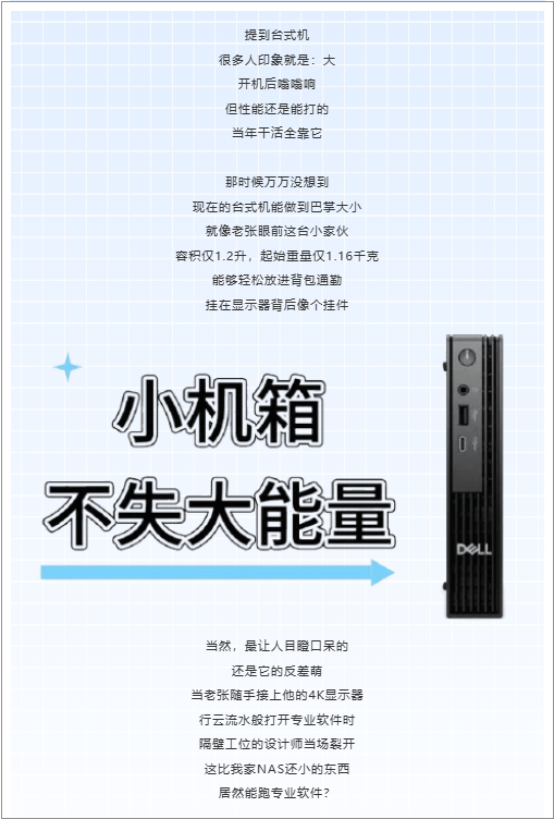 别急,这正是我们要解开的科技谜题:Dell Pro Micro台式机为啥能做得这么小?在这么小的同时还能保持“大”机器般的性能?