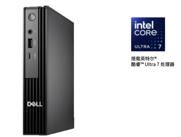 第二代英特尔® 酷睿™ Ultra 7 处理器内置NPU支持本地运算,如动态噪声抑制、视频编辑加速,性能较同类产品有明显提升。同时,功耗相比上代产品大幅下降,再辅以戴尔优秀的散热设计,因此才能被部署至如此微型的机箱之内。