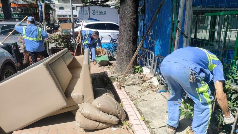 此次行动聚焦辖内景区景点、公园、交通站点、客运码头、绿化带、内街巷等重点场所,环卫工人先清理台风后吹下的断裂木枝、树叶和隐蔽在绿化带的积存垃圾,并集中清理冷巷内的塑料篷布、纸箱、建筑废料等杂物,对大件废弃物使用车辆及时清运;消毒人员随后对投放点内外缝隙、绿化带、沟渠排水口等蚊虫孳生地,采用滞留喷雾器和超低容量喷雾器进行喷洒消杀,确保不漏一处、全面覆盖;居委会组织党员志愿者和网格员深入小区开展入户清积水、清垃圾及宣传防控工作,实现“环境整治+宣传发动”双线同步推进。