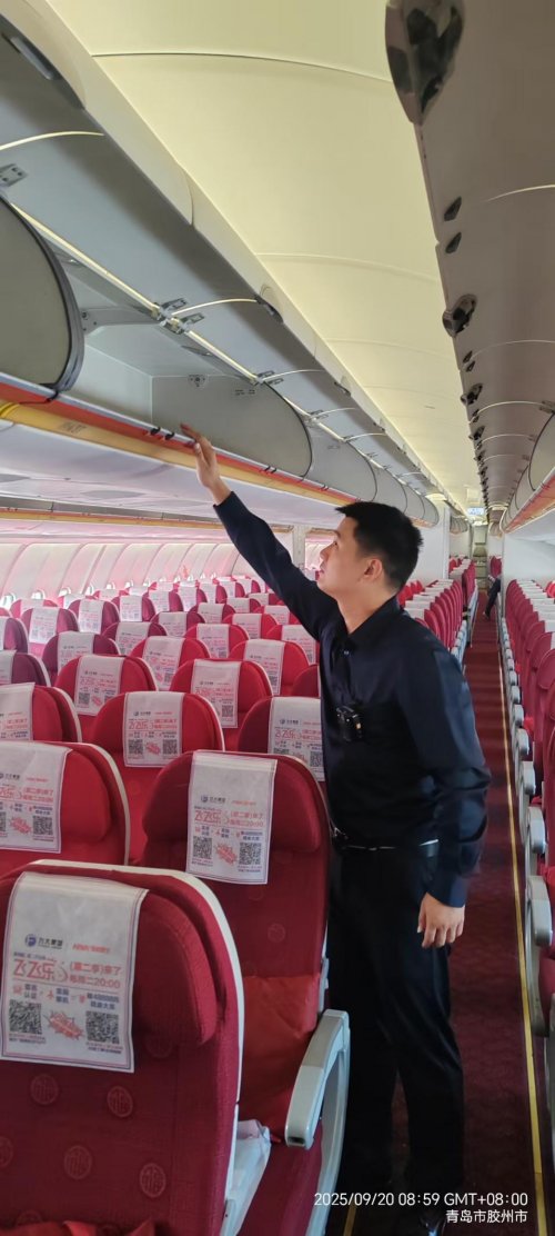 日常工作中,老谢始终把“落实职责”放在首位。无论是航班前的装备检查、客舱安全巡视,还是飞行中的客舱监控、应急准备,他都按标准一丝不苟地执行。遇到旅客携带不符合规定的物品,他会耐心解释规章,既守住安全底线,又尽量让旅客理解;看到客舱里可能存在的安全隐患,比如松动的行李、未系好的安全带,他总会第一时间上前处置,从不放过任何细节。他总说:“安全不是口号,是每一次检查、每一次提醒攒起来的,咱多留心一点,大家的安全就多一分保障。”