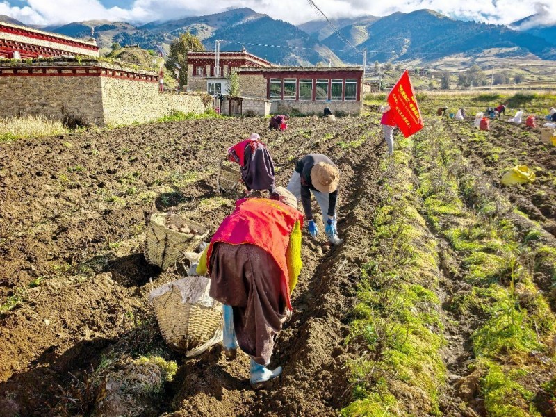 近日,海拔3500米的四川省甘孜州理塘县木拉镇则工村,连片土豆地迎来丰收。村民们正忙着刨挖、分拣、装袋,欢声笑语回荡在田间,一幅产业兴、乡村美、农民富的乡村振兴画卷正徐徐展开。