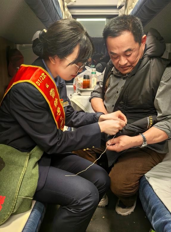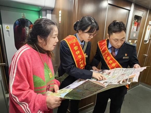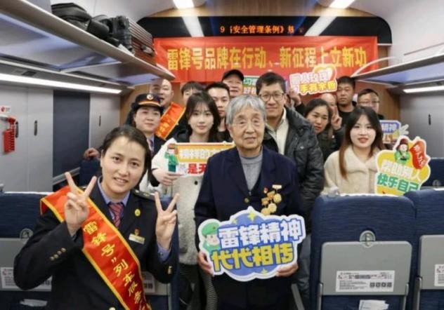 2025年3月5日,第62个“学雷锋纪念日”,在长沙开往北京的D2次“雷锋号”列车上,“全国劳动模范”王汉云老人与年轻乘务员重温“行进三千里,好事一火车”的故事。“当年我们用扁担挑水、煤油炉做饭,现在条件好了,但为人民服务的初心不能忘。”王汉云老人说道。在担当长京二组列车员时,她常常被旅客夸赞为“活雷锋”,此刻老人胸前的党徽与“雷锋号”徽章交相辉映,像是对“长京人”光荣使命的见证。