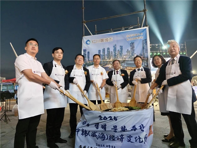 9月26日,2025中韩(威海)经济文化周活动启幕,200余名来自中韩两国的政府、企业和社会各界人士在威海经开区华发新天地中心广场参加开幕式。