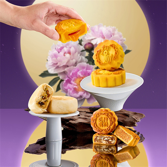 在甜味领域,松子玫瑰风味浪漫而雅致,外皮酥香松软,内馅融合了来自俄罗斯的雪松仁、大颗夏威夷果仁,以及酿自云南高原重瓣红玫瑰酱,花香与果香交织,沁甜迷人。经典百果在传统基础上创新,精选五种优质果仁,并巧妙加入杏干和蔓越莓干,果干的酸甜恰到好处地中和了果仁的油润,使口感清甜温润,毫不腻口。而备受喜爱的流心奶黄月饼,采用无麸质台式桃山皮,结合咸蛋黄炒制工艺,融入浓郁奶香,切开瞬间流心涌动,咸香与奶香扑鼻而来,展现出现代工艺与传统风味的创新结合。
