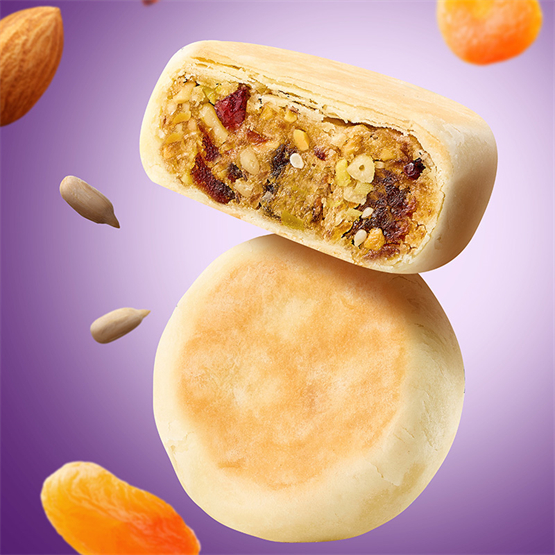在咸味阵营中,香辣牛肉月饼独具一格,严选黄牛后腿腱子肉,以古法卤制浸透,辅以重庆红油增香,采用川式炒制工艺,成就了辣而不燥、诱人开胃的独特风味。金腿五仁则传承经典,严选金华火腿入馅,肉丝劲道分明,入口满是火腿的咸香与果仁的丰润,是对传统口味的诚意致敬。