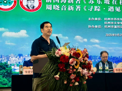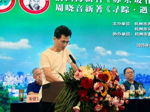 俞国海副会长的《苏东坡在杭州》最打动人心的地方,是它传递出的那种文化传承的使命感。作者通过追溯苏轼在杭州的点点滴滴,实际上是在追寻一座城市的文化根脉。书中那些关于苏轼墨宝、石刻、美食的记述,不仅是历史考据,更是一种文化记忆的修复工作。 ——朱健文副会长