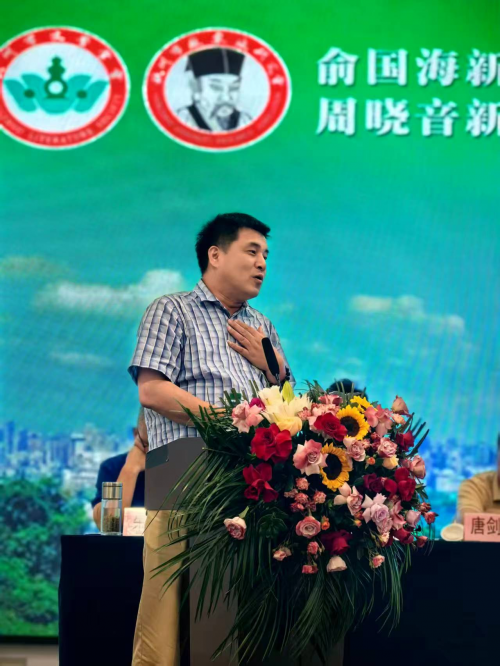 周晓音副会长说,感谢王益庸会长的厚爱,感谢杭州市苏东坡研究会、杭州市文学学会的每一位同仁的鼓励,我们的学会很温暖!2023年10月19日,我和几位苏迷朋友一起从杭州出发,到眉山拜谒三苏祠,我把眉山之行,当作寻踪的真正开始,从此,我用将近两年的时间,走在寻踪路上。如果说,以前是在文学中与东坡相遇,那么这次是在东坡诗文的原创地、他为官与生活的地方与东坡相遇,感知他生命的悲苦喜乐,感染他“守其初心”之志,追慕他笃定潇洒风神。我的这次追寻东坡路,是一次生命影响生命的追寻。感谢大家通过“首发分享会”这种独特的仪式,给我继续前行的力量,我将用最初的心,走最远的路!
