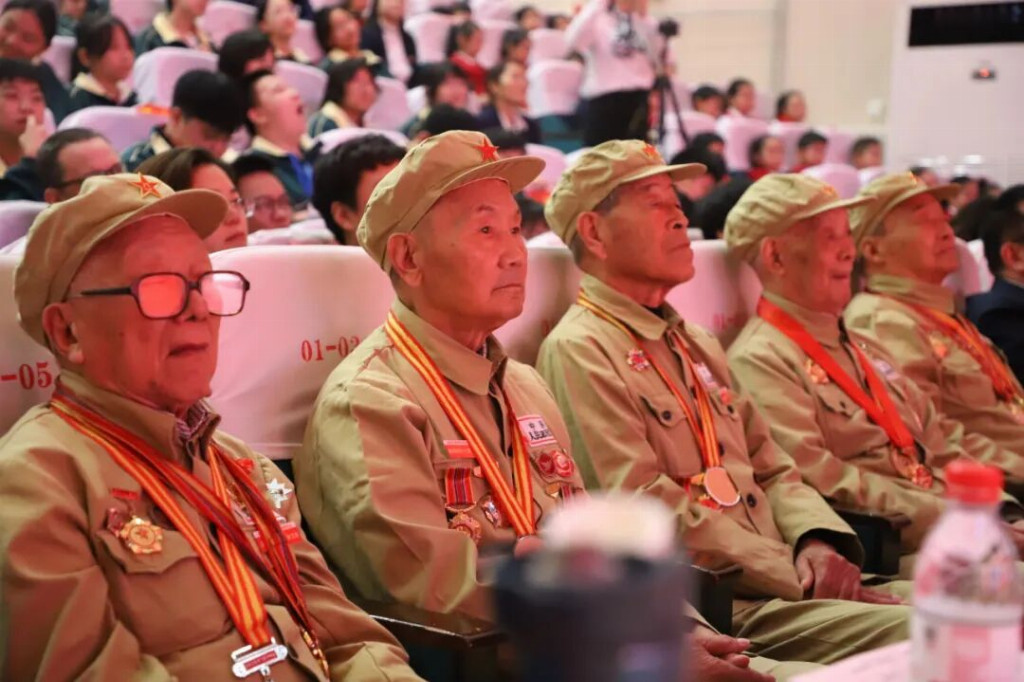 随后,少先队员代表为老英雄献上鲜花,并为老英雄系上红领巾,稚嫩的敬礼与苍老的手掌相印,定格下“薪火相传”的温暖瞬间。