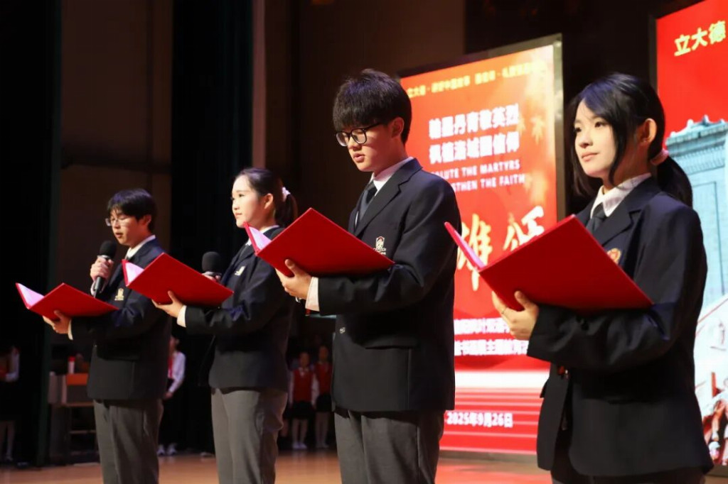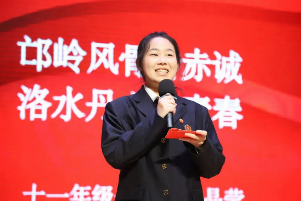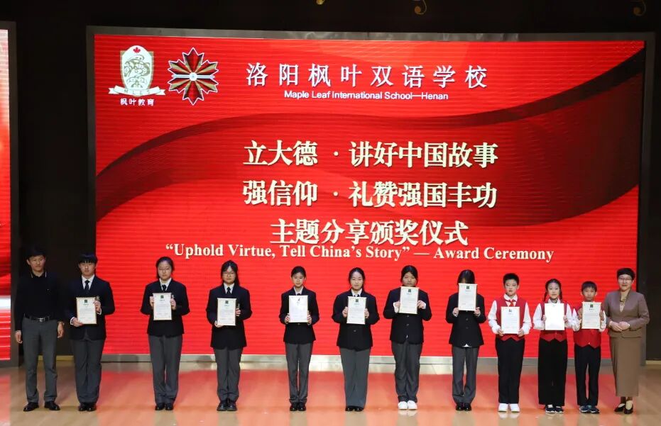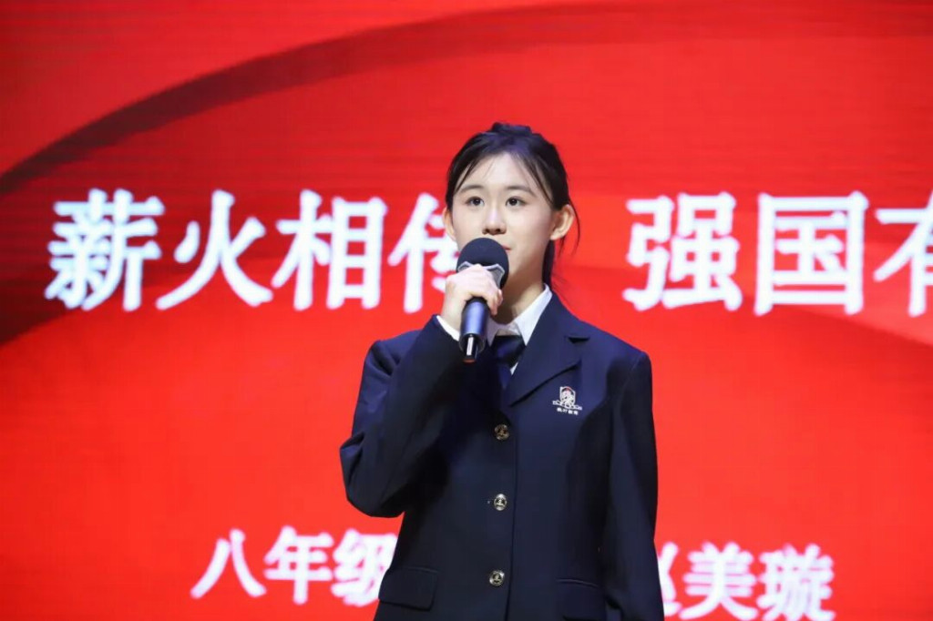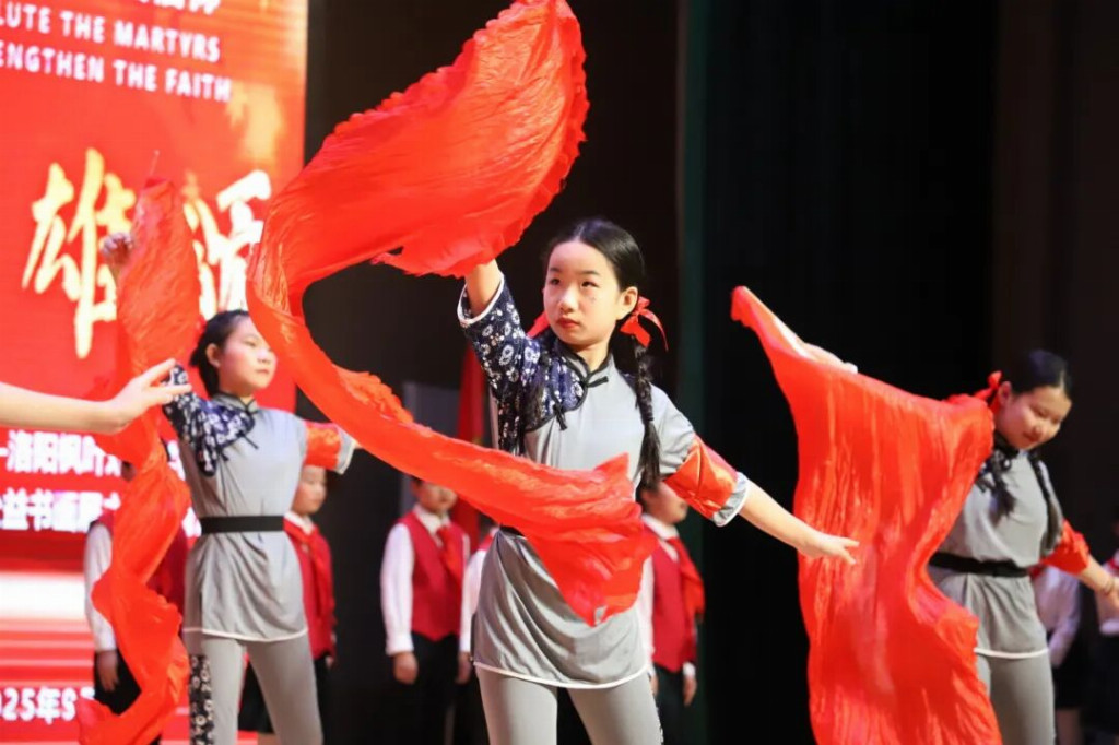 “小英雄雨来面对敌人的威逼利诱,始终坚守秘密,他的勇敢让我懂得‘牺牲’的重量!” 六年级学子高智上讲述英烈故事《小英雄雨来》时,眼中满是坚定;八年级赵美璇以《薪火相传,强国有我》分享科技腾飞的自豪,11年级马晶莹借《邙岭风骨传赤诚,洛水丹心铸青春》诠释河洛大地的红色底蕴,12 年级曹励广则以《根在洛阳,走向世界》诉说新时代少年的国际担当。