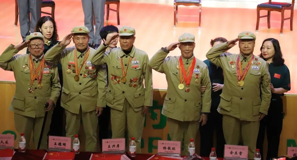 他们分别是:洛阳抗美援朝精神研究会会长,原中国人民志愿军一军一师,王兴彦老英雄;洛阳抗美援朝精神研究会顾问,原中国人民志愿军六十七军,杨铁林老英雄;洛阳抗美援朝精神研究会顾问,原中国人民志愿军三十八军,秦久发老英雄;洛阳抗美援朝精神研究会政委,原中国人民志愿军518送兵团,王德明老英雄;洛阳抗美援朝精神研究会顾问,原中国人民志愿军后勤部,余立堂老英雄。