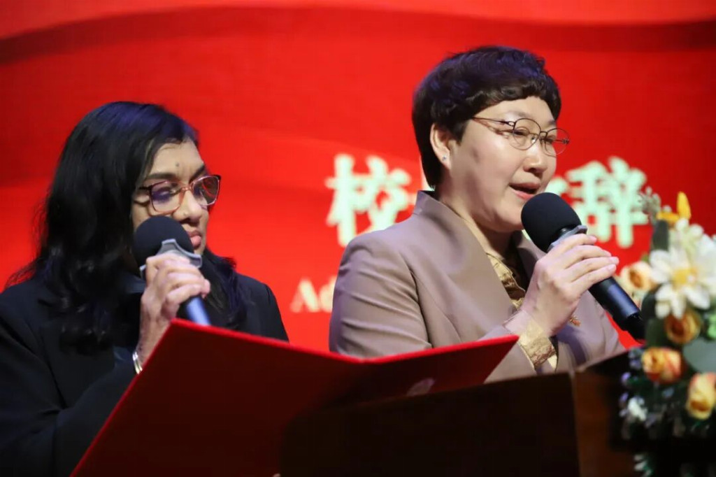 作为承办方,洛阳枫叶双语学校总校长张春杰女士与外方课程校长MS.Haridass在欢迎辞中,分享了学校在“立大德、强信仰”教育路上的坚守——始终将红色基因融入教学点滴,致力于培育兼具家国情怀与国际视野的新时代少年,而英模精神正是学校红色教育中最鲜活的教材。