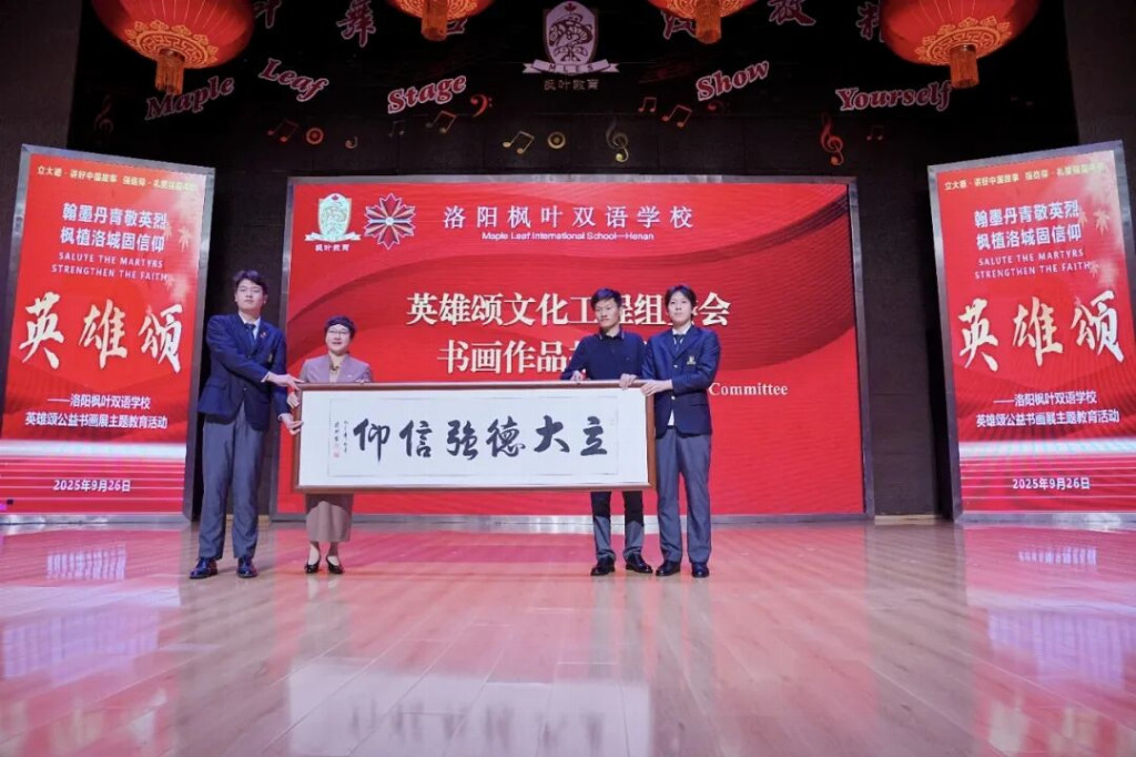 洛水汤汤润文脉,枫叶灼灼映初心。在烈士纪念日与国庆佳节交汇的深情节点,洛阳枫叶双语学校携手英雄颂文化工程组委会,共同举办“翰墨丹青敬英烈·枫植洛城固信仰”英雄颂公益书画展主题教育活动。
