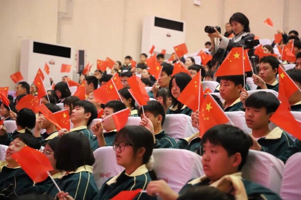 “五星红旗迎风飘扬,胜利歌声多么响亮……”当高中音乐社学子唱响《歌唱祖国》,现场所有嘉宾、师生、家长纷纷挥舞手中的小红旗,跟着旋律齐声合唱。激昂的歌声回荡在校园上空,将对祖国的祝福、对强国的礼赞融入每一个音符,让“礼赞强国丰功”从口号化作心中滚烫的力量。