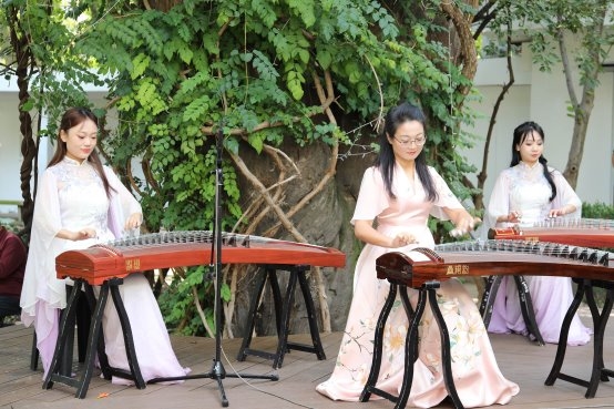 演艺新空间首次“实景呈现”文艺展演,包含大提琴独奏、诗歌朗诵、相声、非遗魔术、古筝演奏等多元节目,各节目结合庭院自然场景,带来沉浸式体验,为“空间+艺术”画上完美句号。