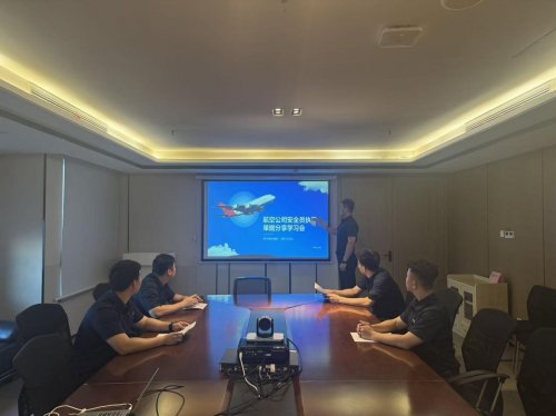 为进一步规范航空安全员执勤单据填写与管理,提升安全员业务水平,筑牢航空安全防线,近日,北京首都航空组织开展了航空公司安全员执勤单据分享学习会。学习会在公司会议室举行,现场布置简洁,投影屏幕清晰展示着“航空公司安全员执勤单据分享学习会”的主题,参与学习的航空安全员们身着统一制服,精神饱满,以积极的态度投入到此次学习中。