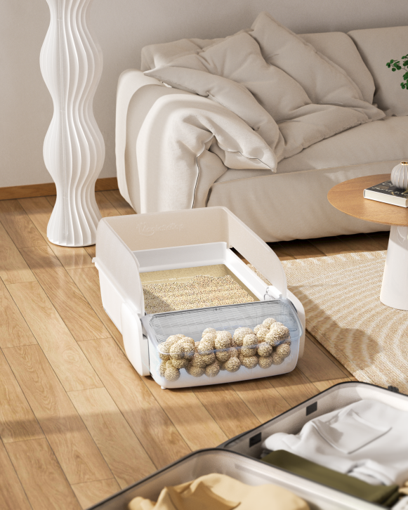对铲屎官而言,该产品最大程度实现了清洁过程的自动化与智能化。搭载高精度感应系统,可在猫咪离开后自动启动清理程序,精准分离并收集排泄物至7L大容量密封集便盒。其创新的三分区猫砂铲设计,有效提升对小颗粒结团的过滤效率,减少残留与异味产生。配合可安装的除臭魔方,进一步抑制异味扩散,确保家居空气清新。单猫家庭可实现7-10天清理一次,多猫家庭也同样适用,极大减轻日常维护负担。
